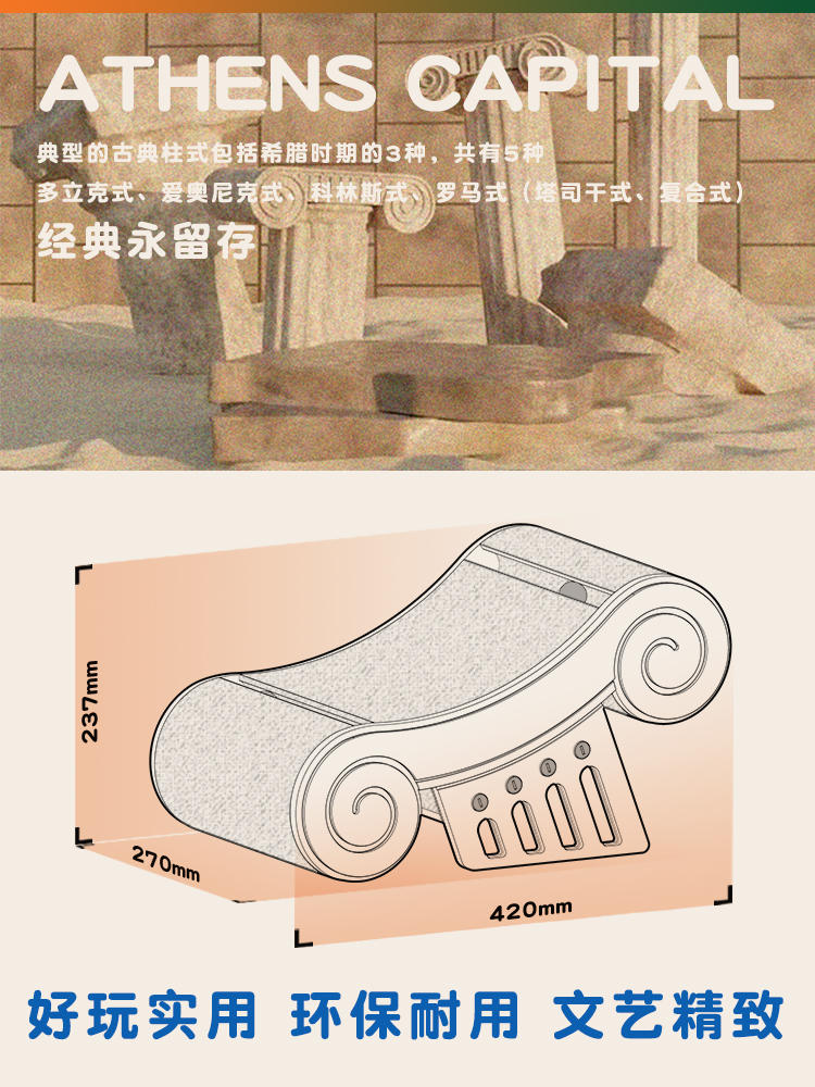 Stylish and Durable Design: Inspired by ancient Greek architecture, the Athens Capital Cat Scratcher combines elegance with practicality, making it a chic addition to any home decor.